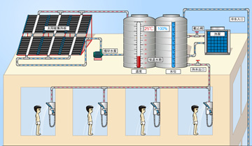 對于工廠、學校、醫院、酒店,一般采用集中輔助加熱;可設變頻供水、定溫回水、全天候恒溫供水或定時供水等功能。
